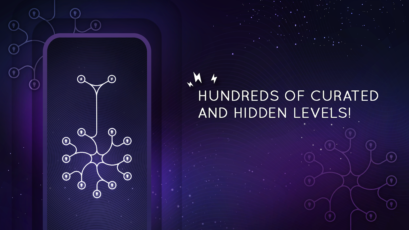 Simple gameplay: Just tap the lines to rotate and create connected loops. The wires will shine when at least one bolt and a lamp are connected through a line.