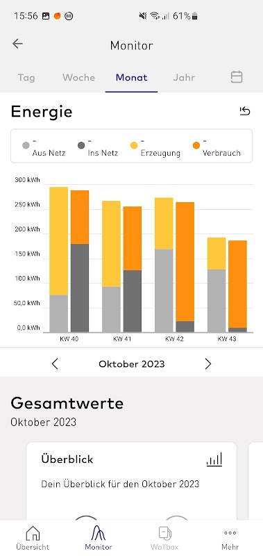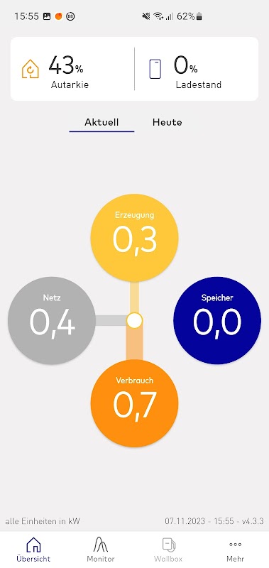 With the energybase app, you can easily see how much you are currently producing with your solar system on your own roof. You can also see how much of it you use yourself and how much of it is fed into the public grid.