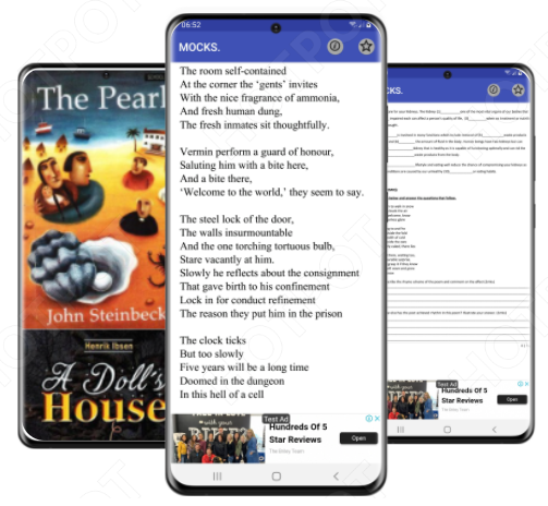 The app provides English past mock papers and their marking schemes.