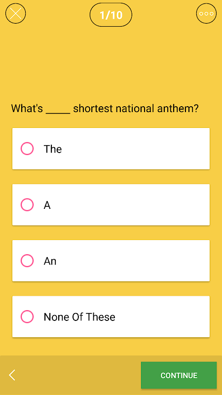 This grammar test is the best way to improve your English grammar knowledge. Stunning minimalist design and clear user interface make it easy to test your English language skills.