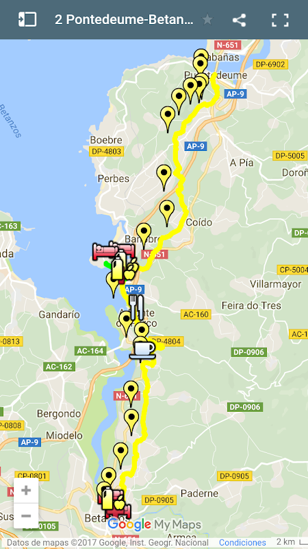 Stages of the English Way from Ferrol to Santiago