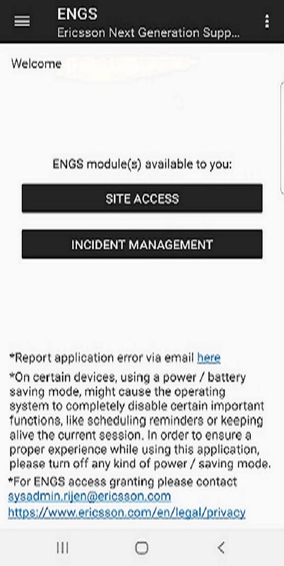 "The ENGS application targets the Operations Teams of Ericsson Managed Services and its partners are intended for their use only.