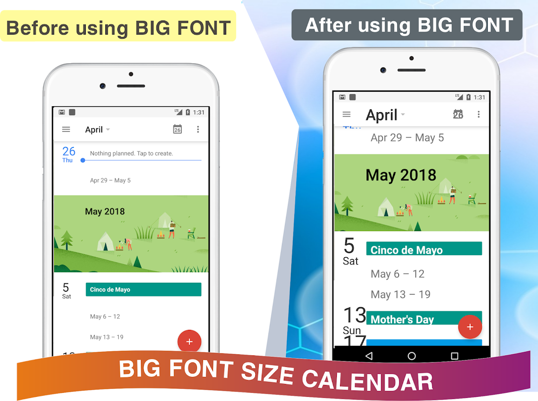 Big Font - Change Font Size is a produced to help all people in the world to read text and number more clearly and rapidly on Android OS. Change Font Size is a simple tool to help you change system font size from 50% to 240% (2.4x larger) on your devices. And also this is free application!