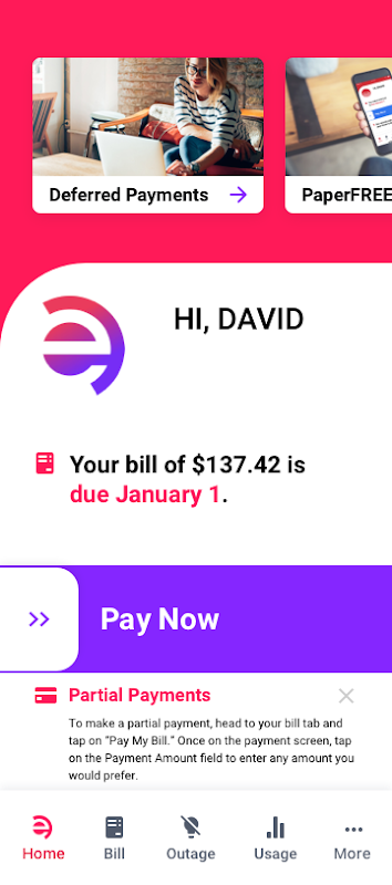 The app offers the ability to set up and manage contact preferences for billing, outage, usage and more via text, voice, or email channels. You can customize your dashboard to suit your needs and find the information you need, fast. Learn our latest news and updates with a single tap. Provide your feedback using Real Time Ratings following payments or before logout or share free form via Contact Us on More screen.