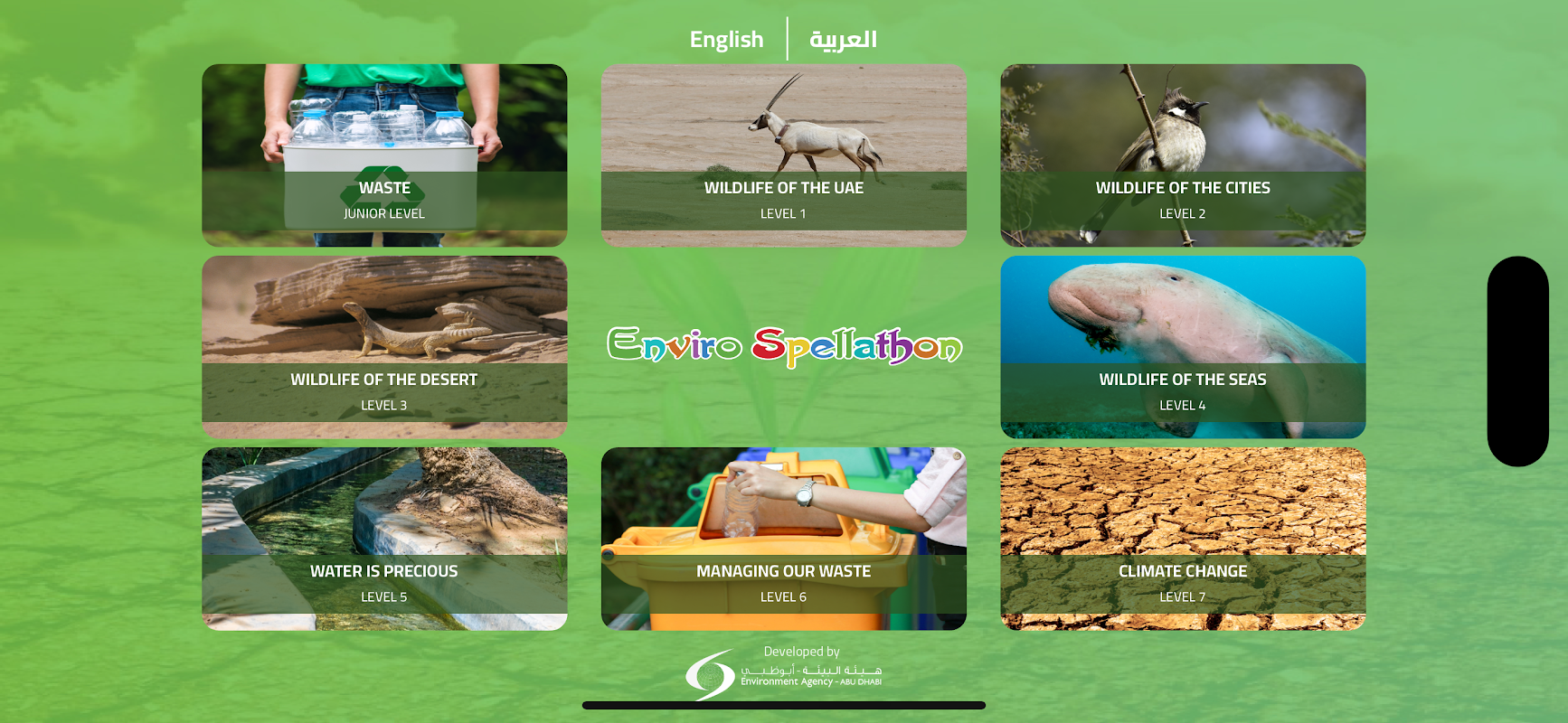 Enviro-Spellathon app work on Seven Levels for students from below 5 years to 13