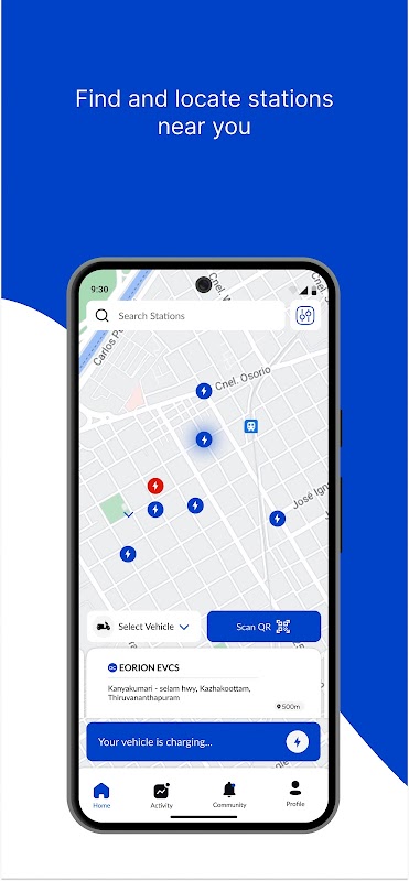-Find nearby charging stations