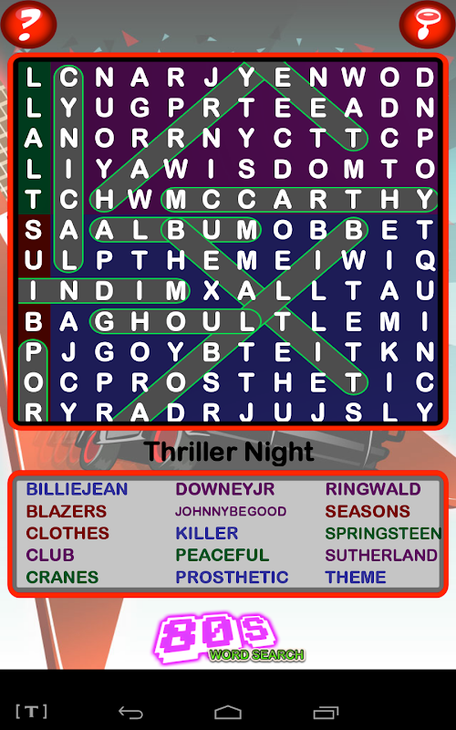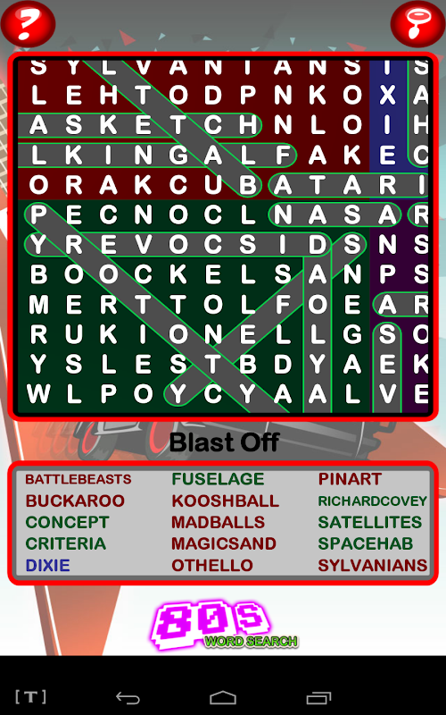 Epic 80s Word Search was compiled from user submissions in Word Search Party, also by Lightwood Games. Like our record-besting game Word Search 10K, the biggest word search ever made, it has been hand-crafted to form one large, continuous puzzle with words in every direction.