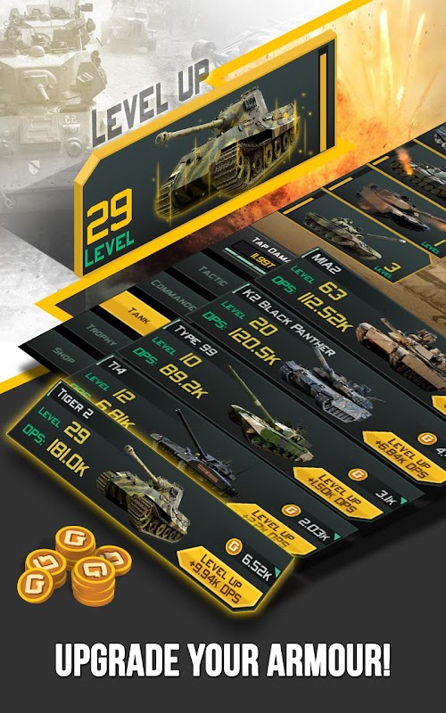 Tanks of iron and steel. Prepare your army for world war! Command, upgrade and level up your tank battalion, and click them into place with advanced tactics, in a new take on tap warfare!