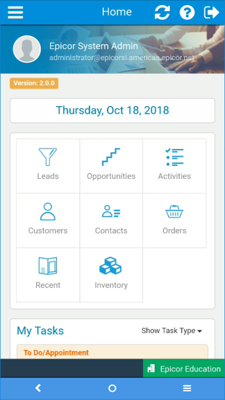 Epicor Mobile CRM is compatible with Kinetic ERP 2021.2 (11.1.200) or later.