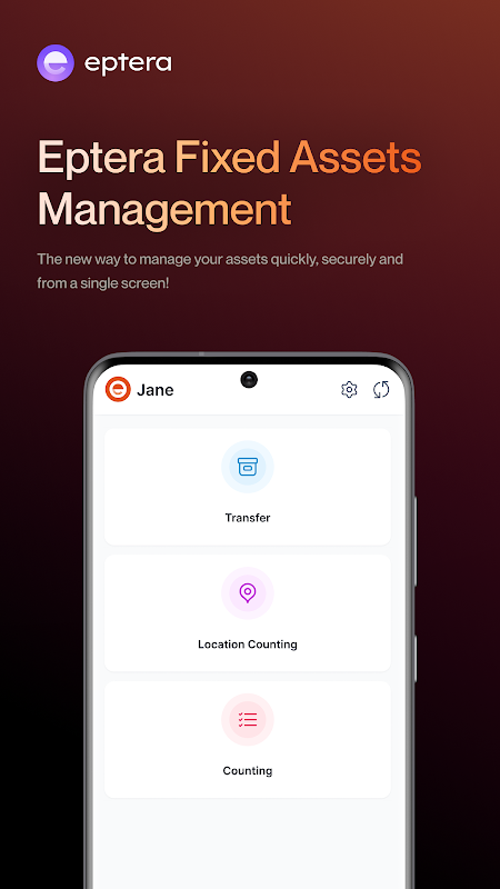 Eptera Fixed Asset is an Eptera mobile application that allows you to track your fixed assets. With Eptera Fixed Asset, you can perform fixed asset and location counting, as well as execute fixed asset transfers
