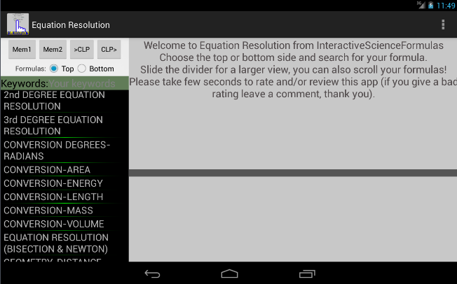 This equation solver is ideal for students and graduates, you will find a variety of useful tools for equations resolution and you can enter a value by touch, the interactive feature make it easy to avoid typing or human errors.