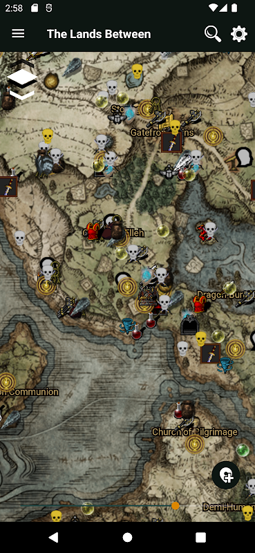 Unofficial offline map for Elden Ring. The map features the locations of: