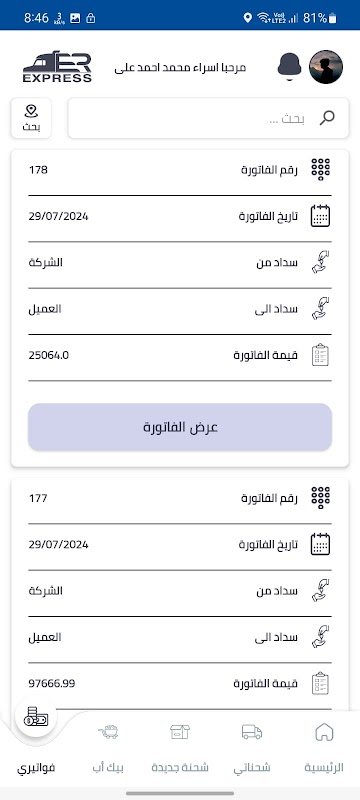 Through the customer interface, through the application, he can add shipments, follow up on his shipments, their status, the shipment itinerary, and follow up on his balances and accounts.