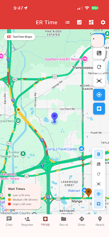 ER Time helps patients and hospitals navigate emergency room visits more efficiently. The app provides estimated ER wait times, digital pre-registration, hospital location services, a medical chatbot, and patient feedback tools.