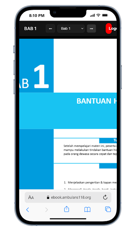 The BT&CLS E-Book Reader application is a digital self-learning platform for healthcare workers in the field of Basic Trauma & Cardiac Life Support. Through interactive e-books, users can learn emergency materials anytime and anywhere. With a modern design and the "118" symbol, this application illustrates the synergy of technology and medical education, while instilling the spirit of "Learn Fast, Act Right" to improve preparedness and professional competence in dealing with emergency situations.