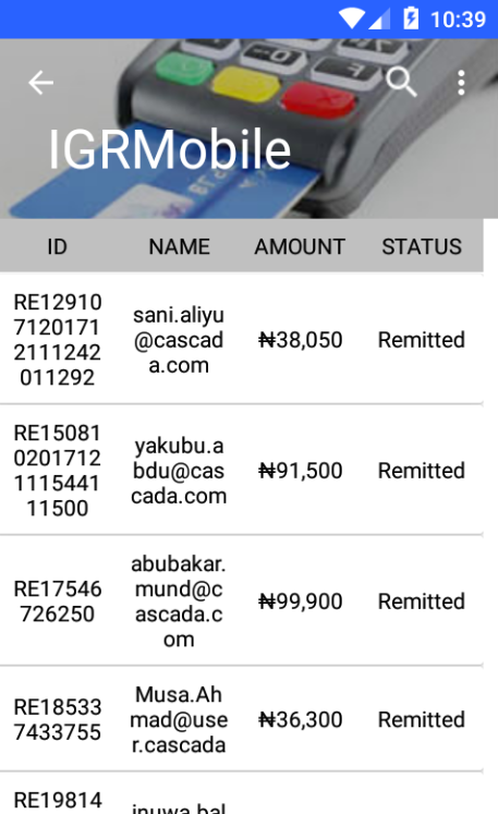 Ercas Internal Generated Revenue (IGR) Mobile consist of the following features