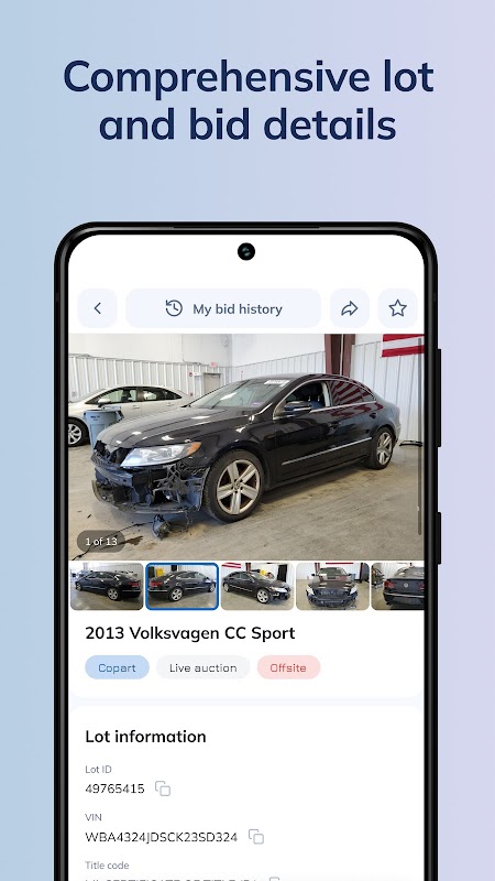 BidWise by Eridan is a mobile app for buyers using U.S. online auto auctions, including platforms like Copart and IAAI.