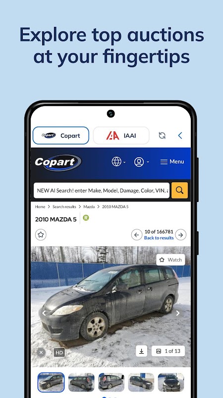 Copart and IAAI data are available within BidWise.