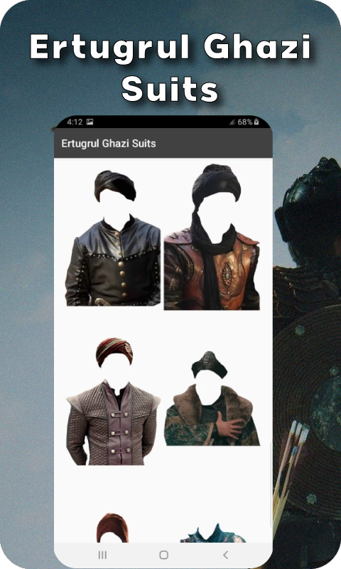 Ertugrul gazi is a famous Turkish drama that has a rich Islamic history and the ertugrul ghazi father of Osman gazi, dress are famous as well. This app contains Turkish drama dirillis ertugrul and osman gazi suits. The realistic photo suits are those of gazi and the his brave muslim army.