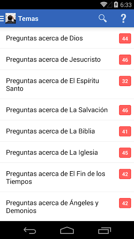 Esta aplicación tiene más de 1500 de nuestras preguntas más hechas sobre la Biblia organizadas por categoría, con una función de búsqueda integrada, la habilidad de seleccionar artículos favoritos para tenerlos a la mano en el futuro, la habilidad de descargar con facilidad los artículos más recientes y actualizados, y la opción de hacernos una pregunta si la respuesta de tu pregunta no sea ya disponible en la aplicación.