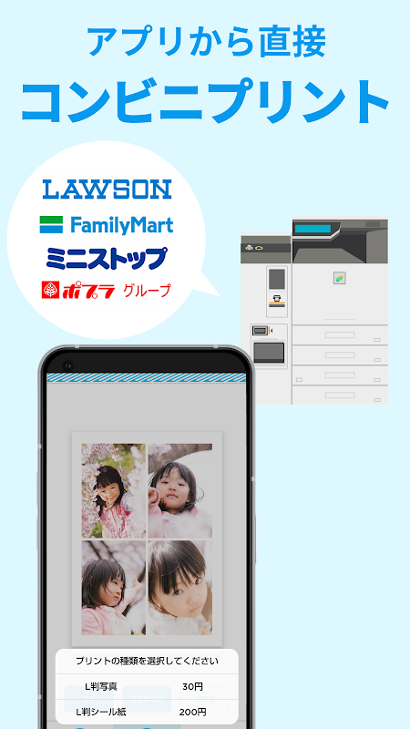 4:データを保存して任意の方法でプリントするか、コンビニプリントでL判写真またはL判シール紙にプリントします.