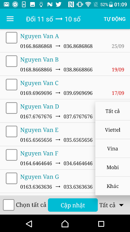 - Cap nhat tinh nang tu dong doi 11 so sang 10 so cho tat ca cac thue bao da duoc bo TT&TT chuyen doi tinh den thoi diem hien tai