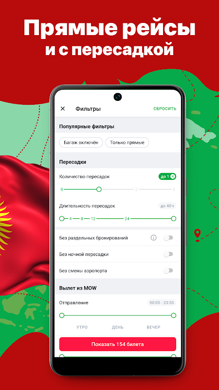 Nuestra aplicación es un servicio de búsqueda rápida🔎 y compra de billetes de avión en Kirguistán. Tenemos contratos directos con aerolíneas y por tanto buenos precios.