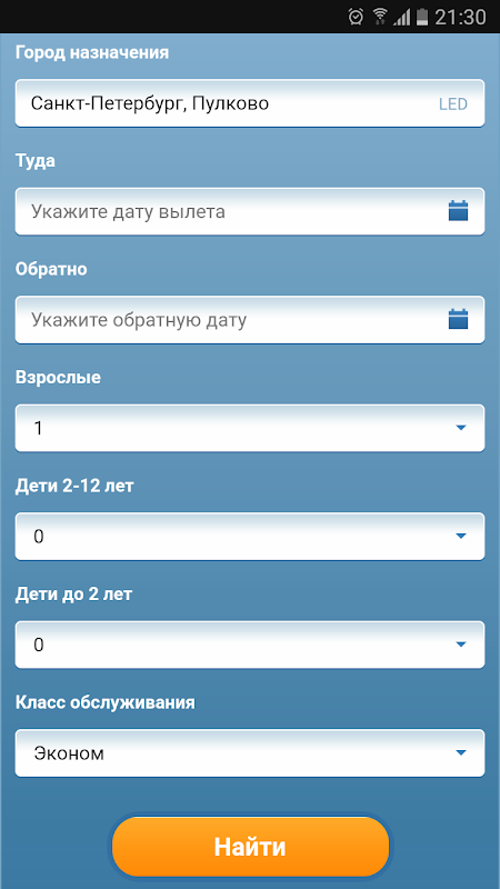 Acerca del Авиабилеты в Москву, Петербург, Сочи, Крым
