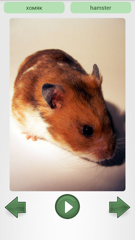 В приложении доступно около 100 слов по темам семья, числа, цвета, фрукты и овощи, еда, домашние и дикие животные.