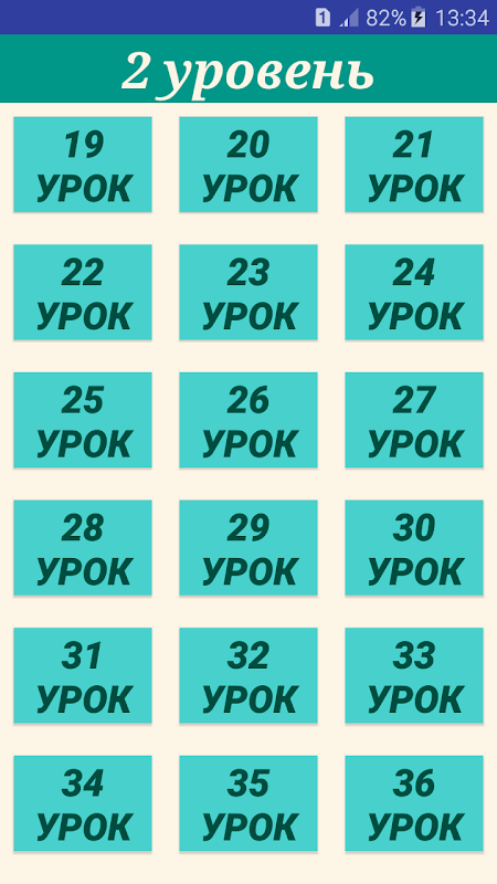 В 25 уроках есть кнопка "Проверить знания", перейдя по которой вы увидите другой экран, на котором в случайном порядке показываются картинки или слова, а пользователь должен нажать кпонку, соответствующую правильному ответу. Если отгадано правильно, то появляется следующая картинка, если неправильно – то появляется всплывающее сообщение «Неправильно».
