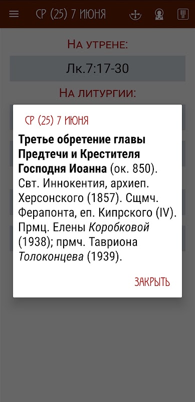 La aplicación Aprakos contiene lecturas ordinarias, festivas y cuaresmales de todos los servicios. En la versión gratuita, las lecturas no están disponibles para todos los días del año.