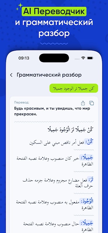 Un traductor de árabe, impulsado por los modelos de inteligencia artificial más avanzados, traducirá el árabe, añadirá vocales (harakat) y realizará un análisis gramatical (i'rob) de cualquier texto árabe. Nuestra red neuronal realiza esta tarea mucho mejor que los servicios de traducción tradicionales.