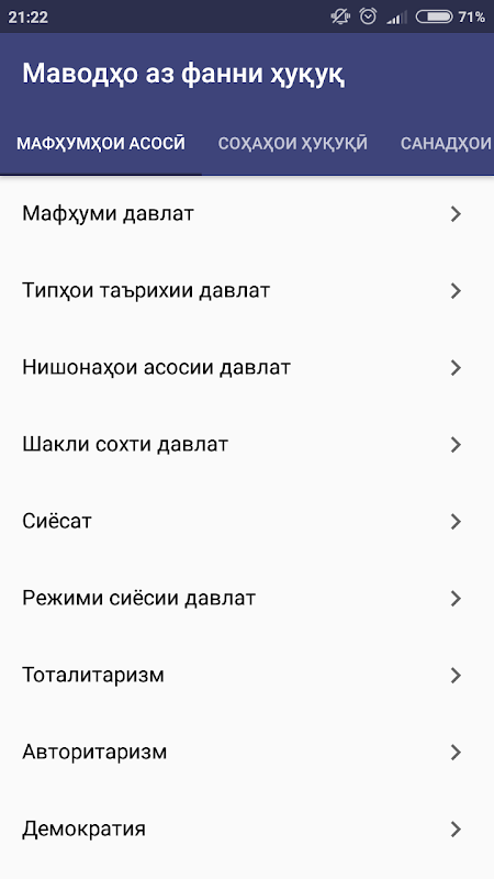 Información de Асосҳои давлат ва ҳуқуқи инсон APK