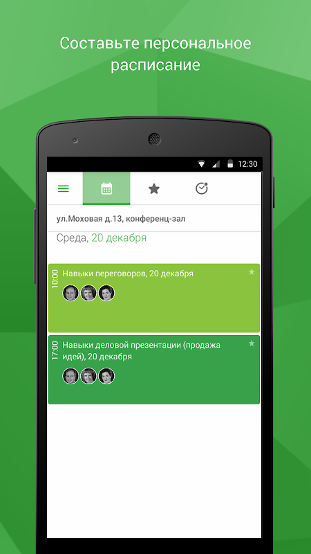 - составить собственную программу и получать оповещения о начале избранных докладов;
