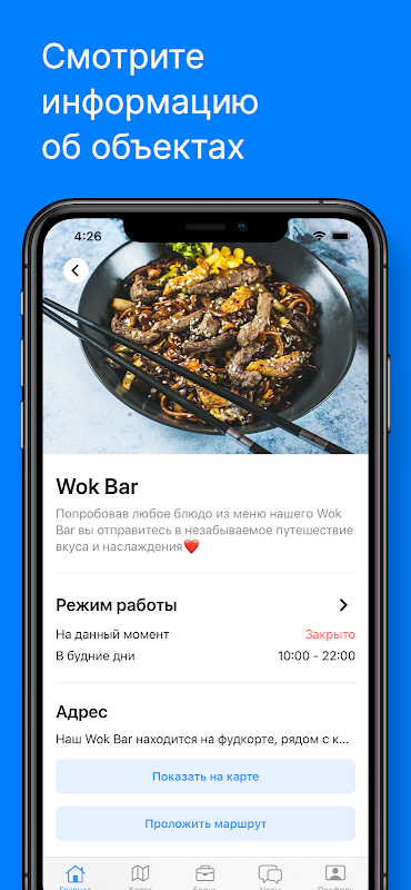 Hay muchos lugares en la base donde se puede disfrutar de una deliciosa comida en una agradable compañía, e incluso los niños no permanecerán indiferentes a la gastronomía local. La aplicación le permite verlos todos y obtener direcciones desde su ubicación. Así que no puedes deambular en busca de algo sabroso, sino probar algo nuevo todos los días, sin miedo a perderte en el territorio de la base o quedarte con hambre. Además, se adjunta información detallada sobre la institución con horarios de apertura y números de contacto.