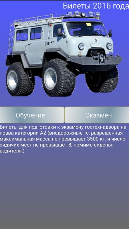 Las entradas para la preparación del examen de la derecha Gostekhnadzor categoría A2 (SUV)