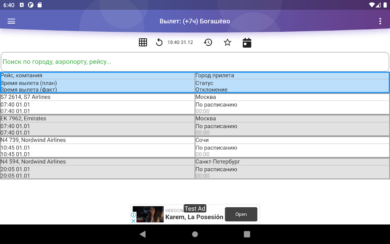 Una aplicación no oficial con información sobre el estado de salidas y llegadas al Aeropuerto de Bogashevo (Tomsk). Además, incluye horarios de vuelos y otra información útil.