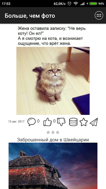 Понравившиеся записи можно комментировать и оценивать. Все понравившиеся картинки можно сохранять в галерее устройства в папке приложения. Ты можешь делиться записями с друзьями через социальные сети, а так же другие установленные на устройстве приложения. Ну и конечно, ты можешь оставлять лайки и сохранять записи в избранное.