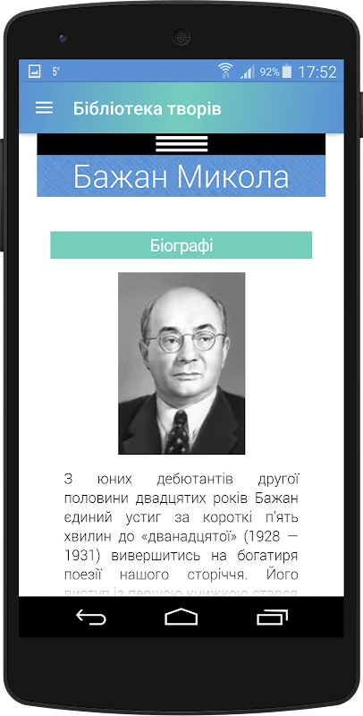 Усі повні та скорочені твори українських авторів лише в нашому додатку. Найбільша база українських літераторів в одному додатку. Тут ви знайдете біографії українських письменників, шкільні учнівські твори, повні літературні твори, та стислий виклад змісту романів та новел. Додаток стане незамінним для учнів 5,6,7,8,9,10 та 11 клас. Також додаток допоможе вам в підготовці до здачі ЗНО з Української літератури, адже містить усі твори з української літератури, у скороченому викладенні, які знадобляться вам при здачі зовнішнього незалежного оцінювання з української мови та літератури. Також написання шкільного твору з української літератури після прочитаного літературного твору українського письменника більше не стане для вас проблемою. В додатку зібрано найпопулярніші учнівські твори з української літератури за шкільною програмою. Також ви зможете знайти цікаві статті про улюблених письменників таких як Шевченко, Леся Українка, Іван Франко, Василь Барка, та багато інших. Найповніший список українських письменників тільки у нас. Додаток також підійде для людей, які цікавляться українською літературою та літературними творами українських письменників, адже тут зібрано фактично усіх українських письменників та їх твори.