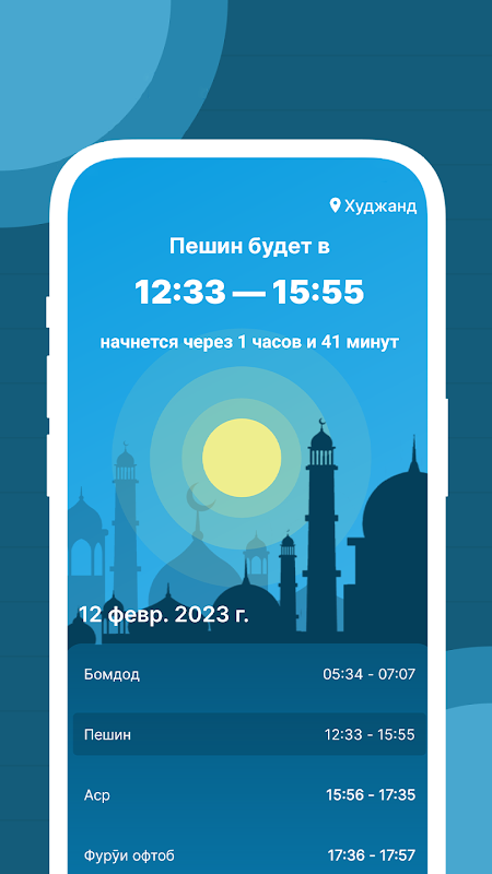 Вакти намоз Точикистон. Вақтҳои намозхонӣ барои Тоҷикистон. Вақти намоз барои ҳамаи шаҳру ноҳияҳои Тоҷикистон аз ҷумла Душанбе, Қрурғонтепо, Кӯлоб, вшта б, Хуҷанд, Рашт, Конибодом ва ғ.