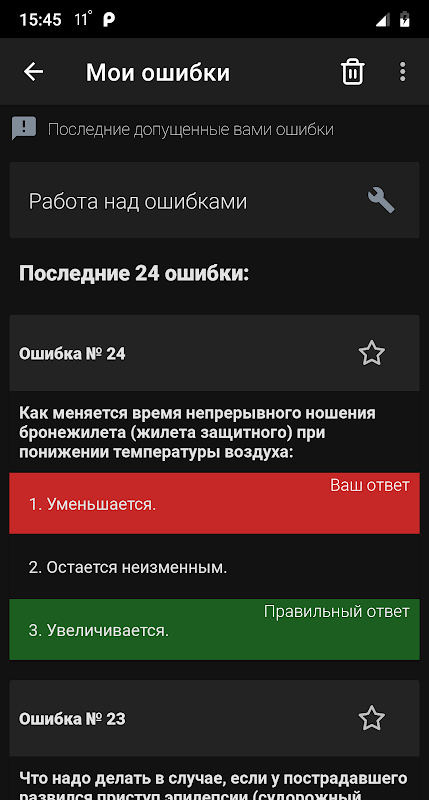- Modo "Entrenamiento", que permite estudiar paso a paso todas las preguntas de la categoría seleccionada