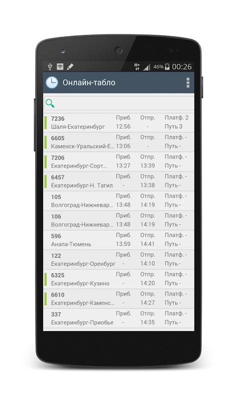 Приложение позволяет в реальном времени просматривать время прибытия и отправления, маршрутные направления и их статусы. Отображаемая информация загружается с официального сайта и является актуальной. Сведения о рейсах можно фильтровать по номеру поезда и пункту прибытия или отправления.