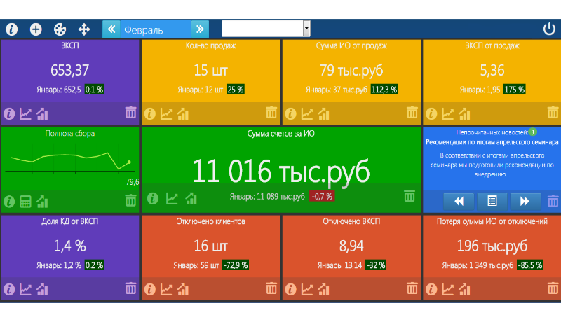 Con este gestor de aplicaciones puede supervisar los valores actuales de los indicadores clave del negocio de la empresa (KPI), analizar la dinámica y tendencias utilizando gráficos visuales y detallados, hacen hincapié en el "sumidero" para realizar un seguimiento del desempeño y el logro de los objetivos.