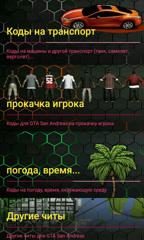 Descargar todos los códigos en el GTA San Andreas en el androide libre ruso!