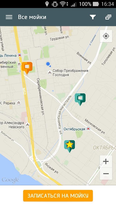 - приложение построит оптимальный маршрут до выбранной мойки от вашего текущего месторасположения