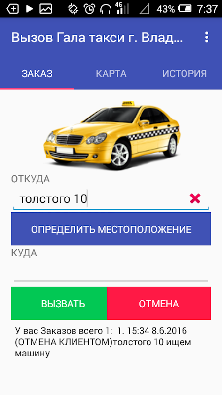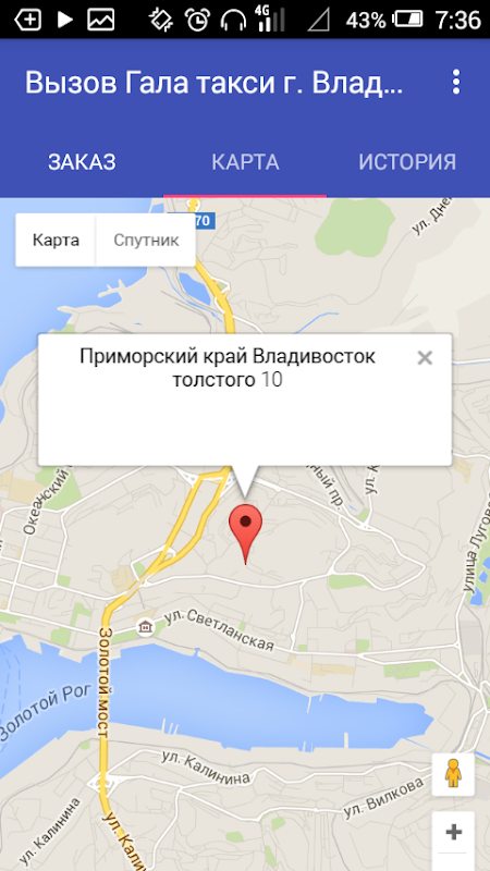 La aplicación permite a un teléfono inteligente para llamar a un taxi Gala Vladivostok