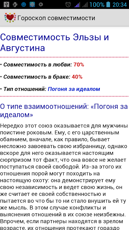 APKPure utiliza verificación de firmas para garantizar descargas de Гороскоп совместимости APK libres de virus para ti.