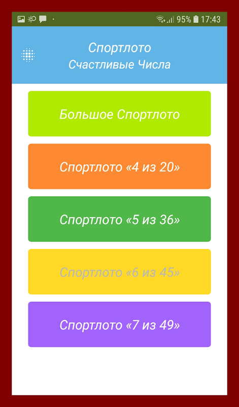 La aplicación "Sportloto Lucky Numbers" es una buena ayuda para los fanáticos de las loterías populares de la empresa Stoloto: