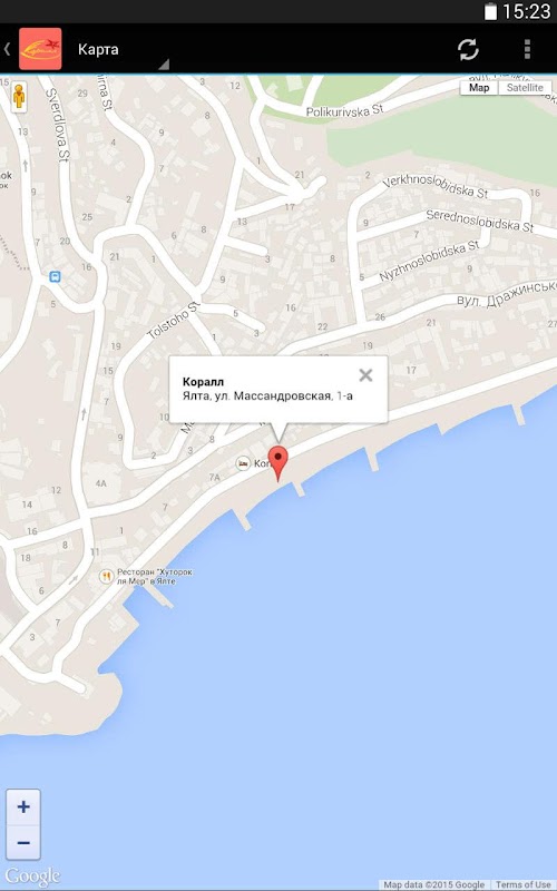 В приложении можно посмотреть описание и фотографии номеров гостевого дома "Коралл", узнать стоимость проживания, посмотреть расположение гостиницы на карте и видеоролик об отеле на YouTube. Здесь также имеются фотографии окрестных видов, а из приложения можно перейти на официальную страницу гостиницы в социальной сети или на её главный сайт, оптимизированный для просмотра на мобильных устройствах. Из приложения также можно забронировать номер, или написать электронное письмо портье. В гостинице созданы все условия для отличного отдыха в Ялте и Крыму!