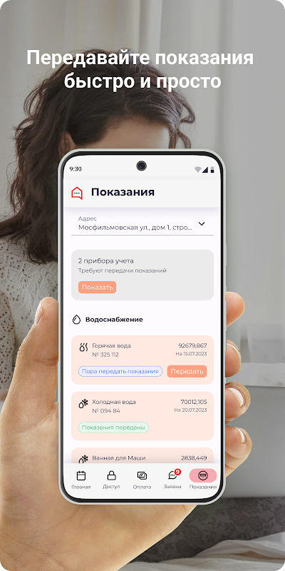 Simplemente ingrese las lecturas actuales de los dispositivos de medición en el móvil. Y toda la información irá automáticamente al Código Penal, Asociación de Propietarios